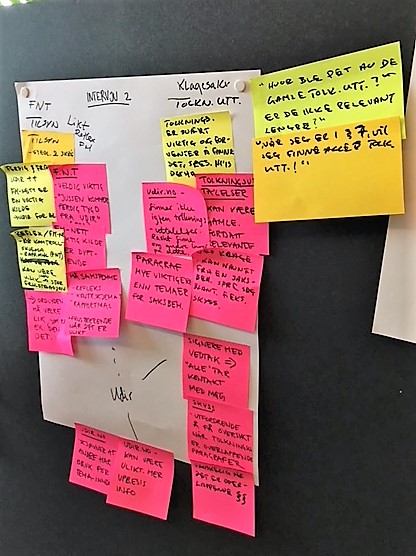 Nå må gruppen/teamet snakke sammen. Lappene skal sorteres etter innhold under kategorier de selv lager.